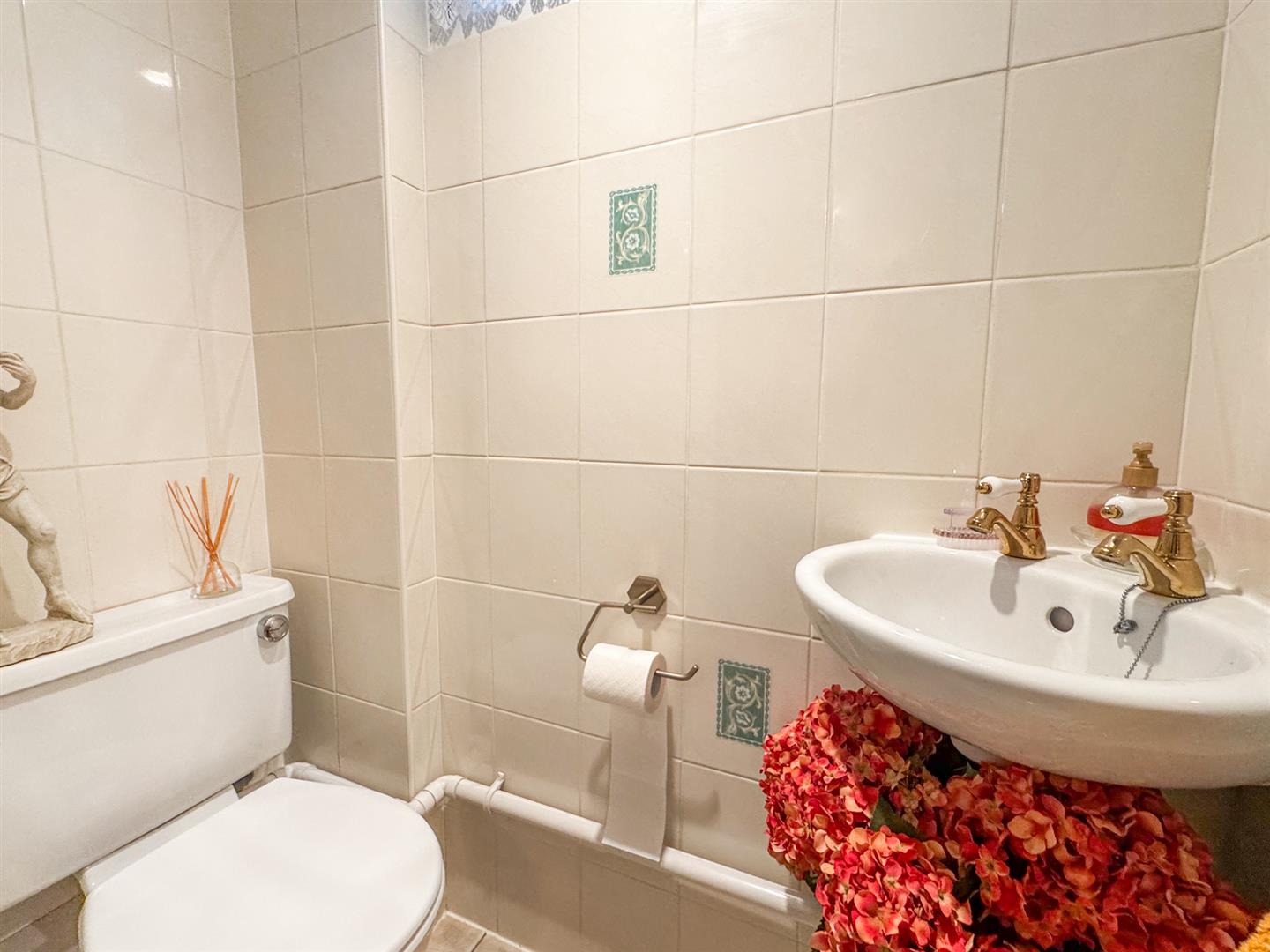 Fitted to comprise of a low level hand wash basin with vanity unit, low level pedestal, walk in shower unit with system shower, ladder radiator, double glazed window to front elevation.