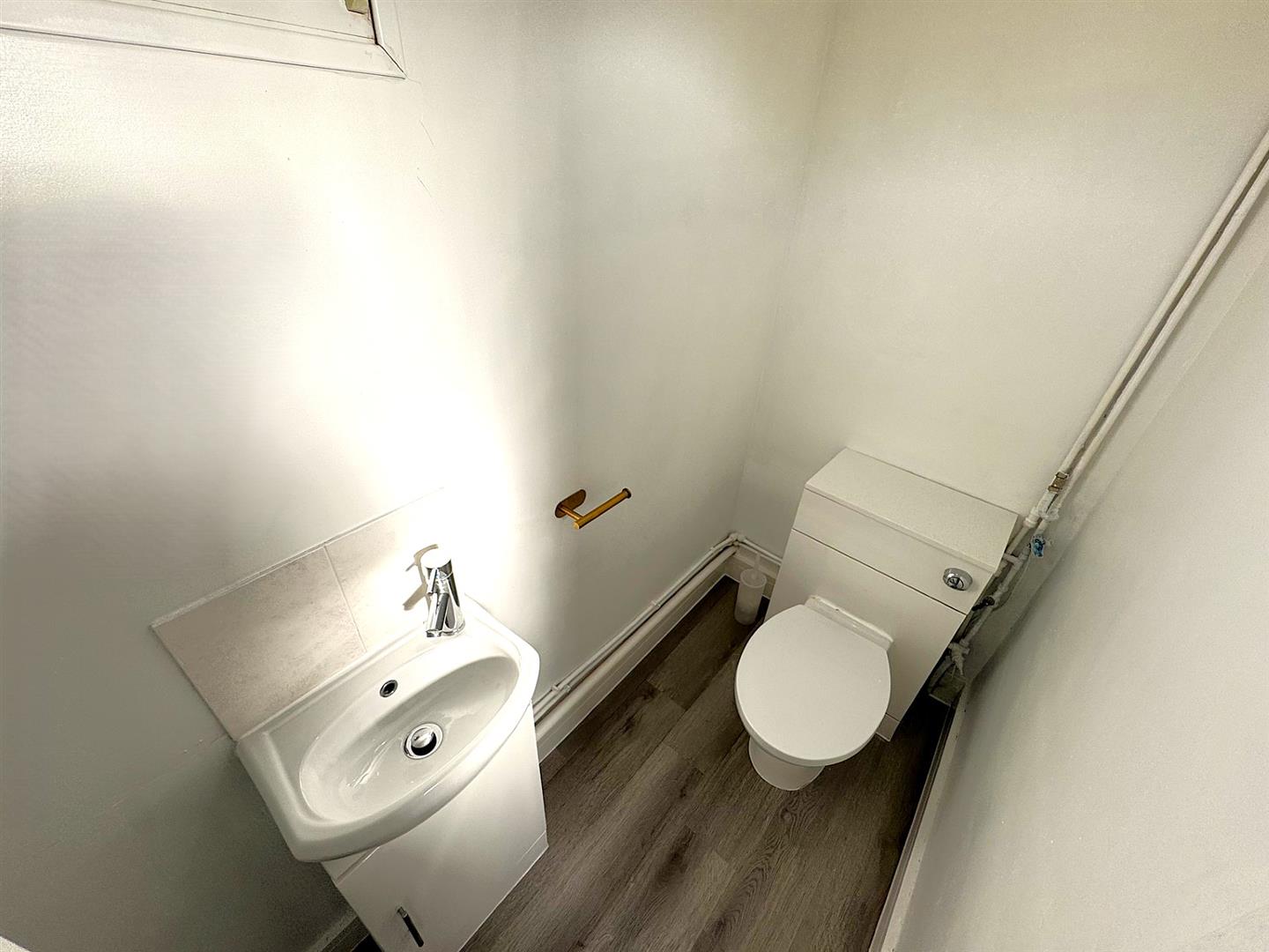 Fitted to comprise a three piece suite consisting of a panel bath with shower over, low level pedestal, low level wash hand basin, radiator, double glazed window to rear elevation.