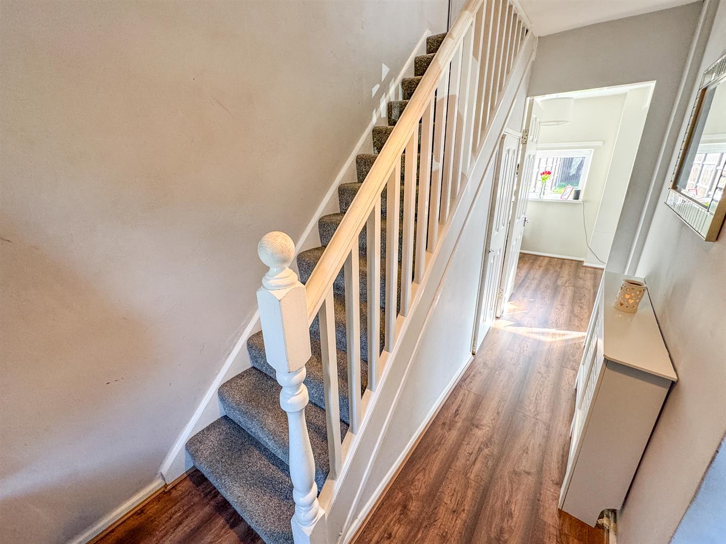 Entered via a double glazed door, radiator, under stairs storage, doors rising to: