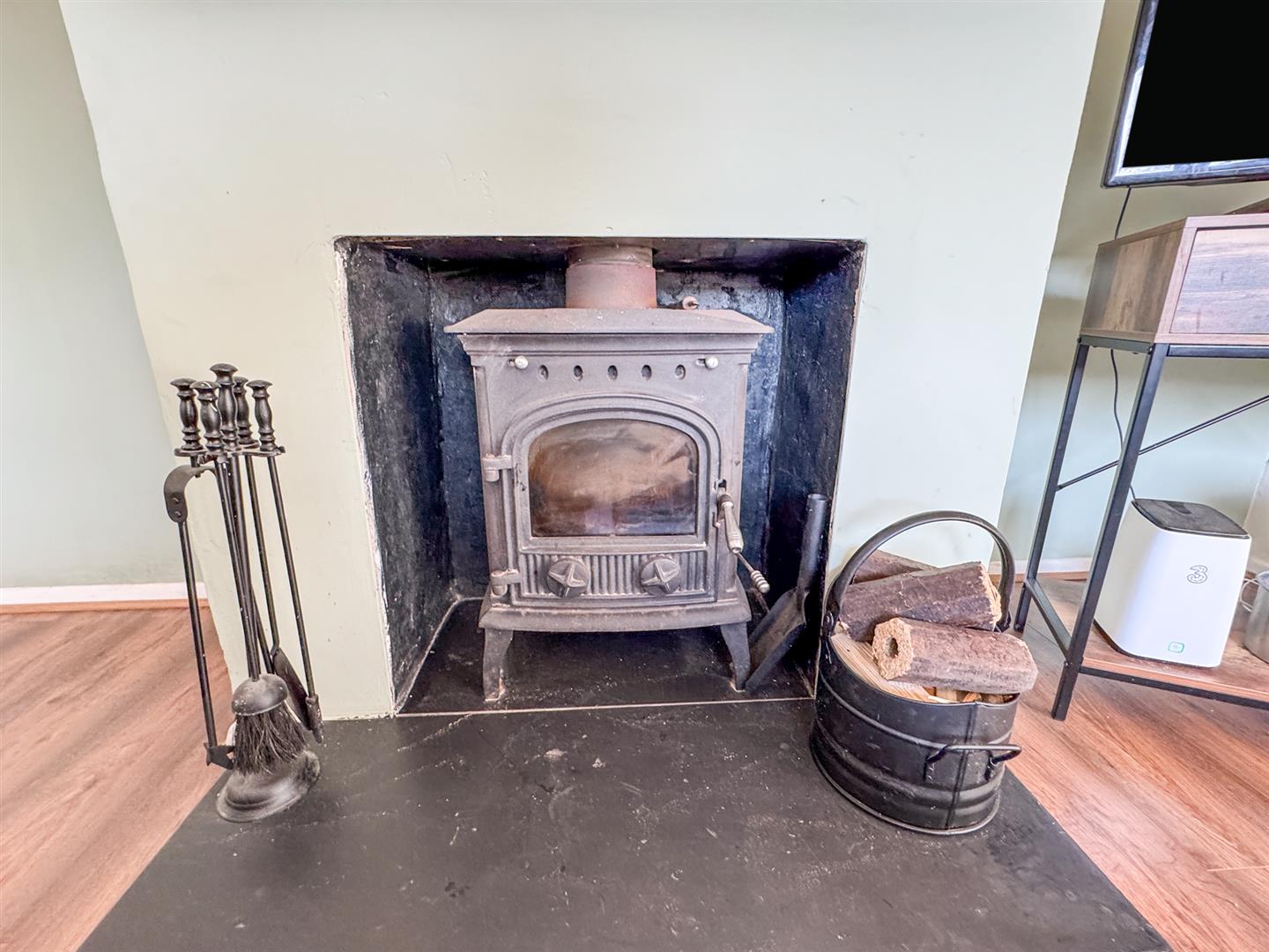 Double glazed French doors to rear elevation, double glazed window to rear elevation, radiator, Tv point, telephone point, log burner.