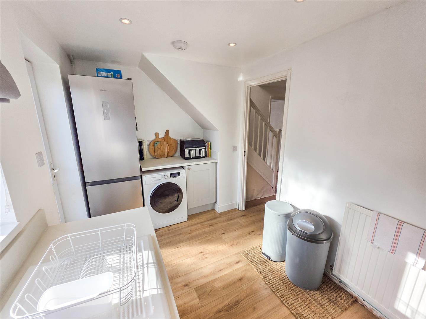 Re-Fitted to comprise a range of base and eye level units with a one and a half bowl sink, electric hob and extractor, electric oven, space for fridge/freezer, space for washing machine, radiator, double glazed window to rear, double glazed door to rear.