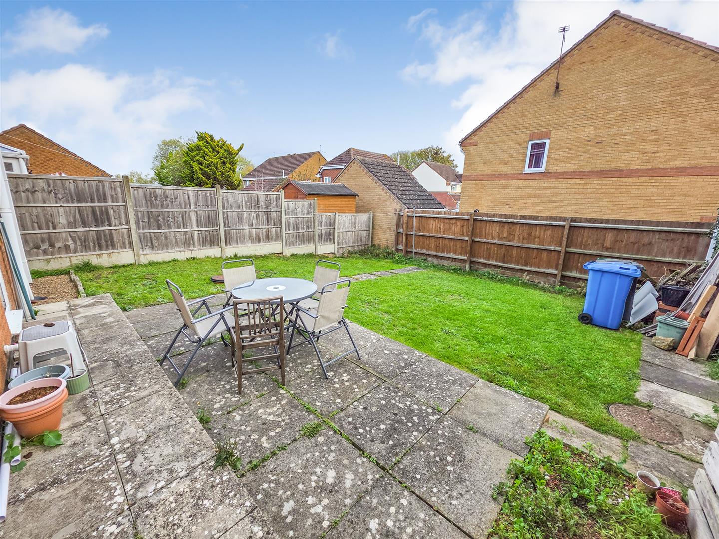To the rear is a patio area that leads into a laid lawn and is fully enclosed by timber fencing, with side gate access to the garage.