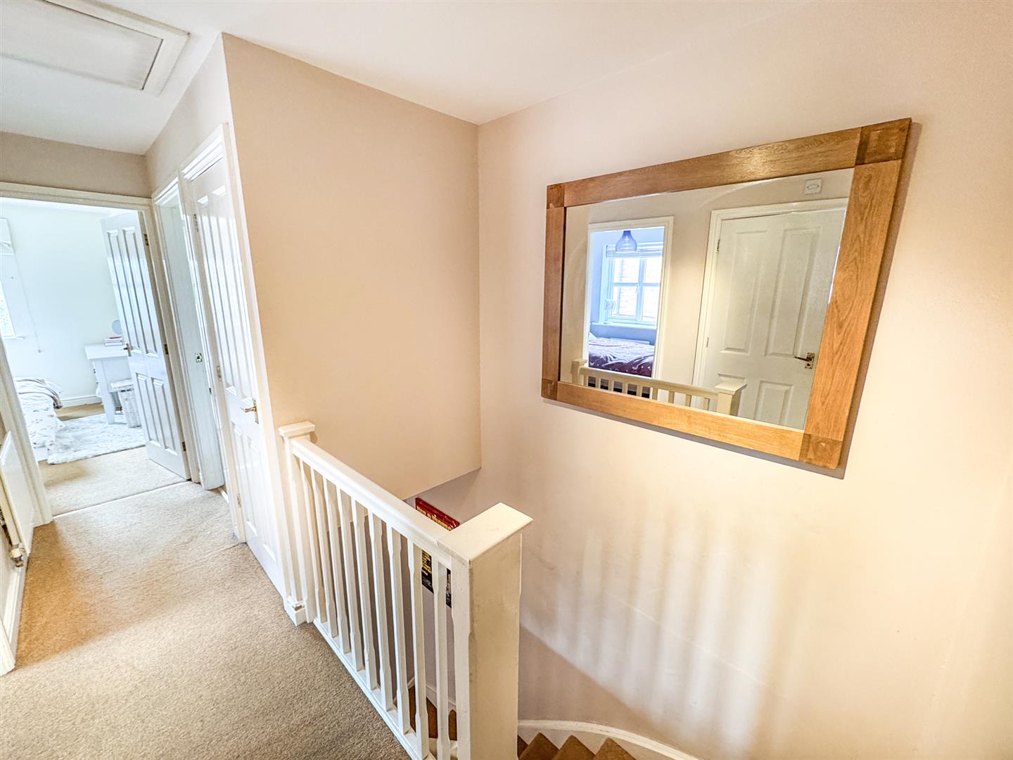 Loft access, stairs rising from ground floor elevation, airing cupboard, doors to: