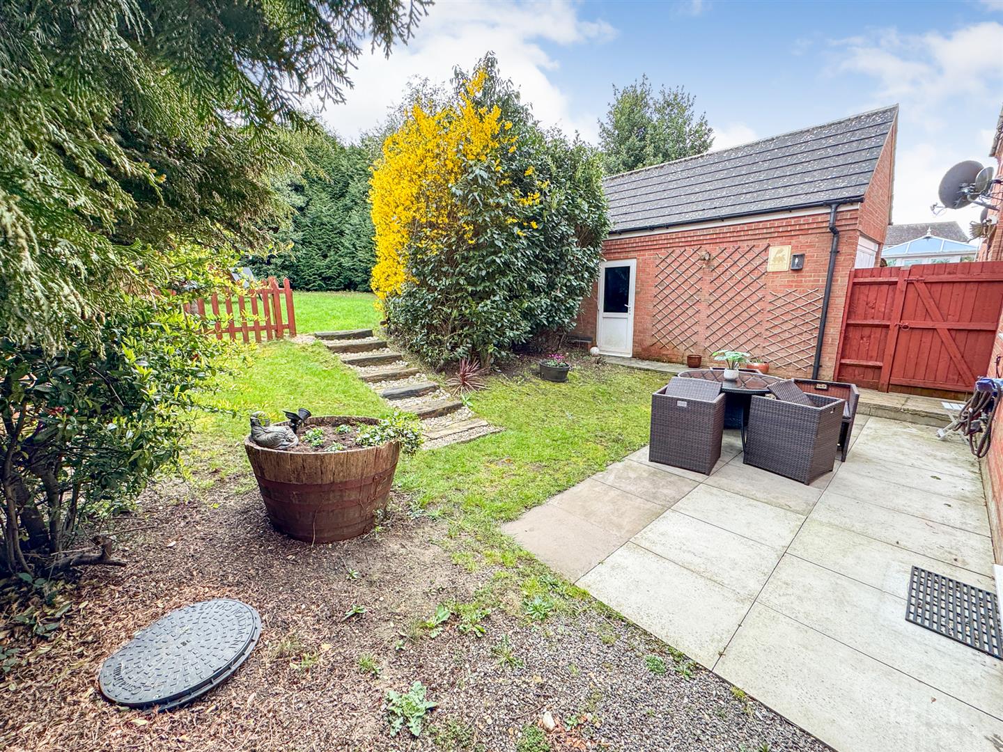 Rear: A large patio area leads up onto a private garden that is laid to lawn, gated access to the driveway and a pedestrian door to the garage.