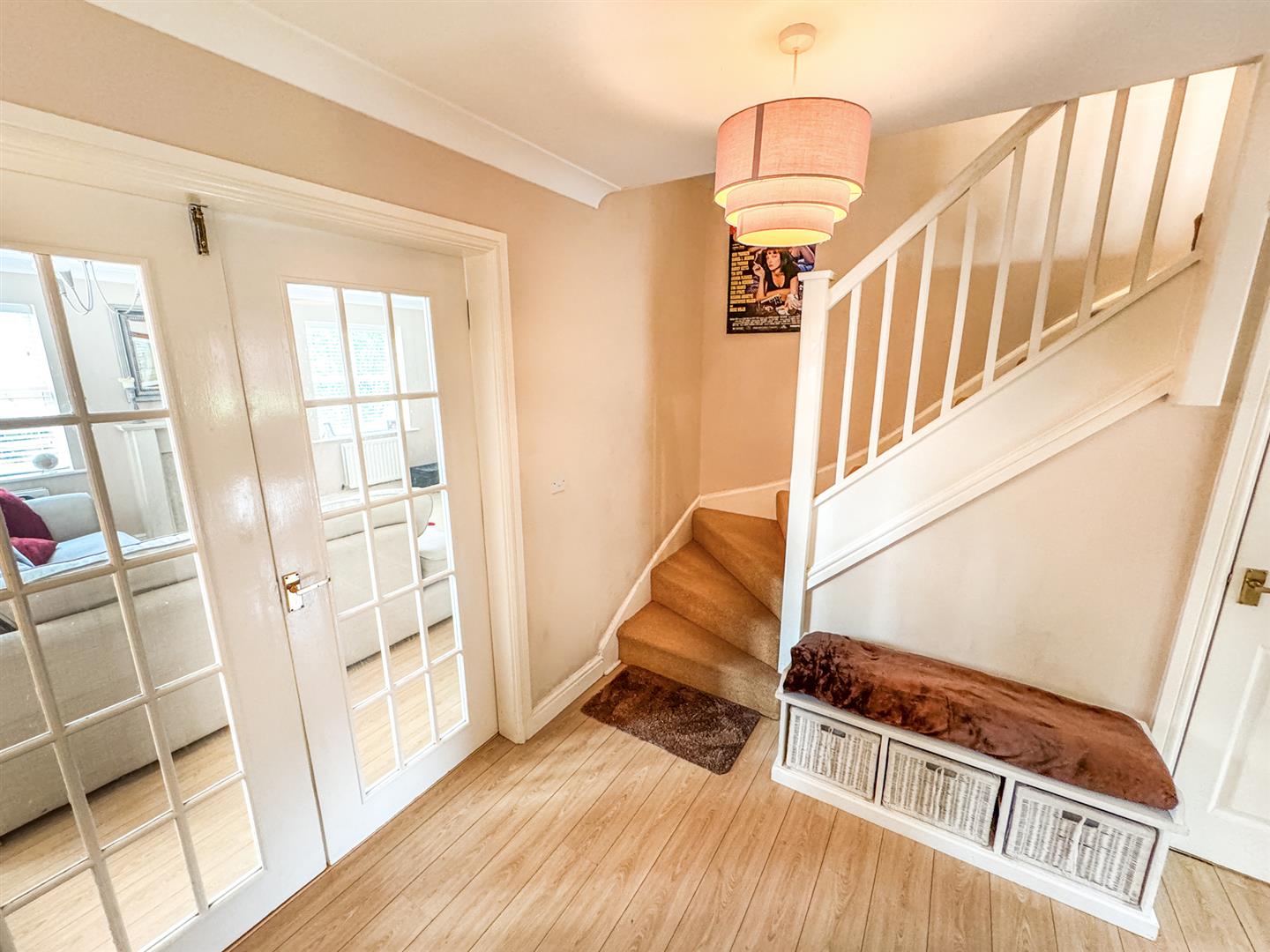 Entered via a double glazed door, radiator, stairs rising to first floor landing, under stairs storage, doors to: