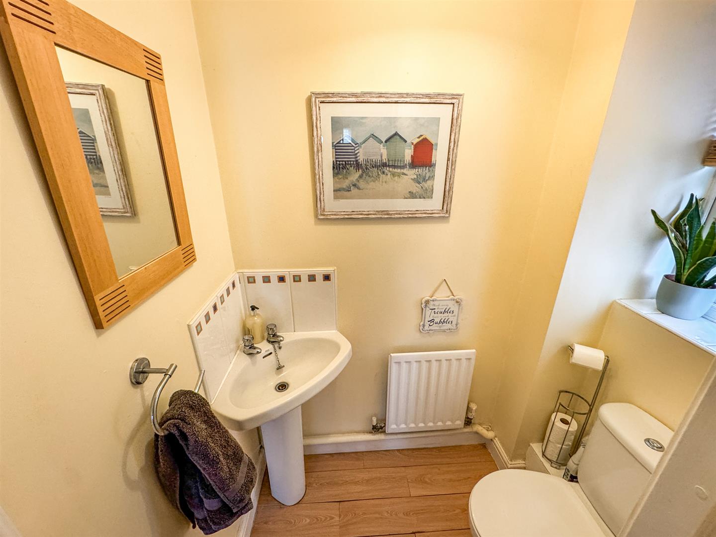 Fitted to comprise a two piece suite consisting of a low level wash hand basin, low level pedestal, radiator, double glazed window to front elevation.