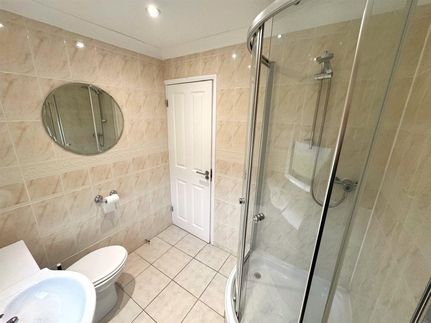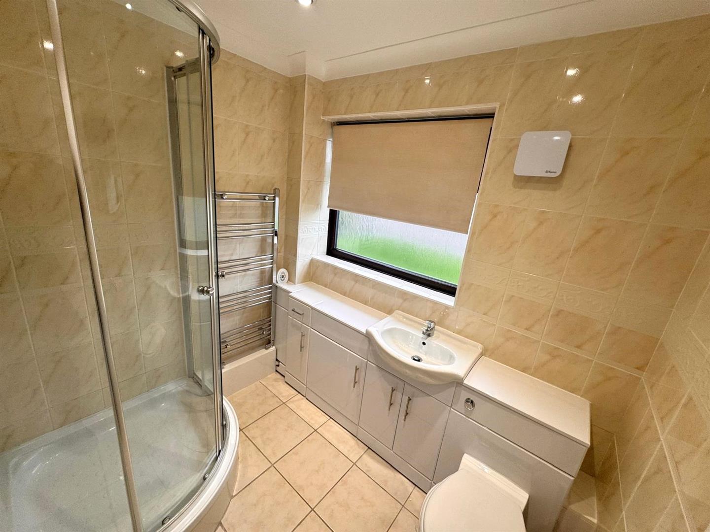Fitted to comprise a three piece suite consisting of a mains feed shower cubicle, low level wash hand basin, low level pedestal, radiator, double glazed window to side elevation.
