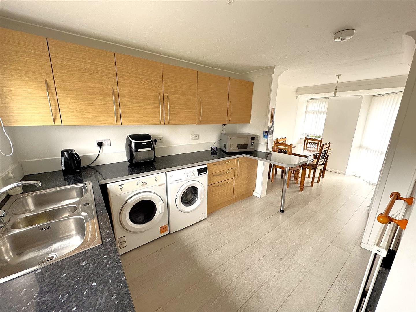 Fitted to comprise a range of base and eye level units with a one and a half bowl sink and drainer, space for free standing cooker, space for fridge freezer, space for washing machine radiator, double glazed window to front and rear elevation, under stairs storage cupboard.