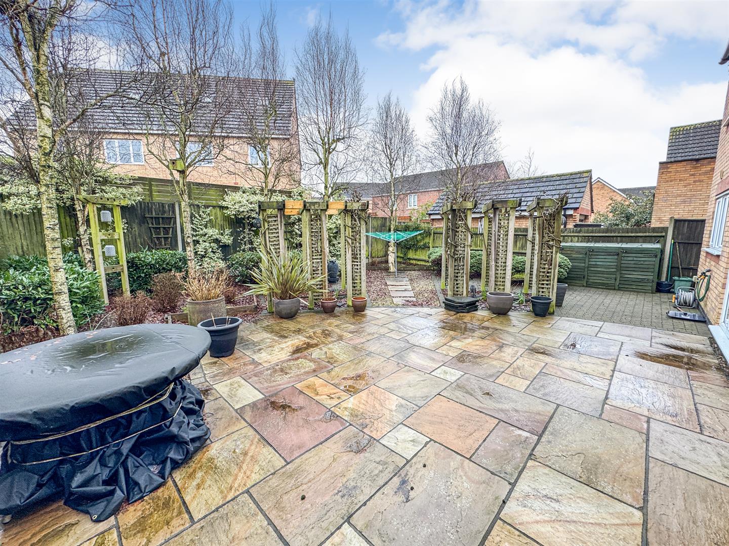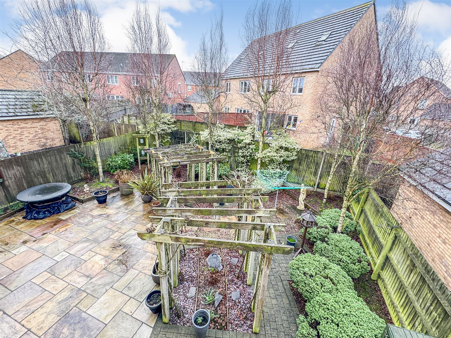 Rear: Designed by Bosworth's is this low maintenance garden with a large patio area and several low maintenance planting and gravel area's, the garden is also enclosed by timber fencing to all sides.