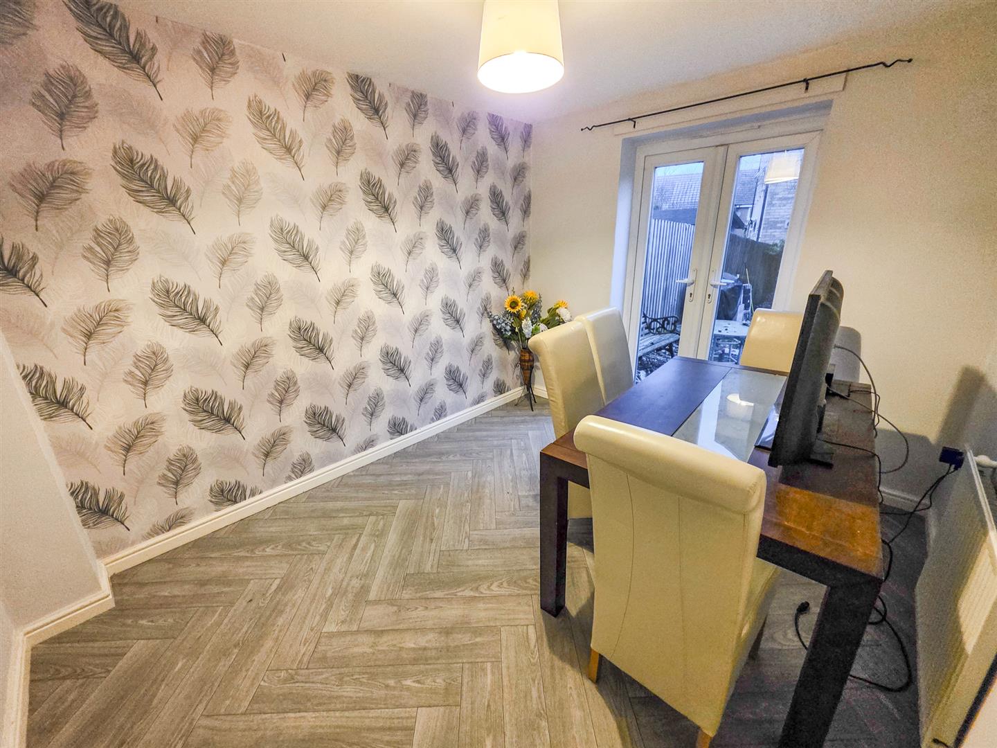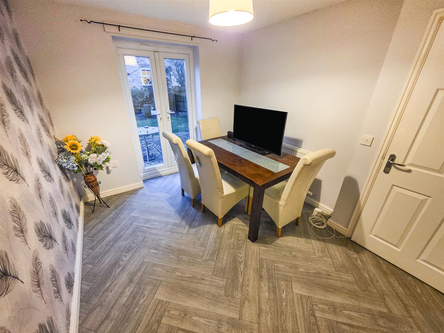 Double glazed French doors with views over rear elevation, radiator.