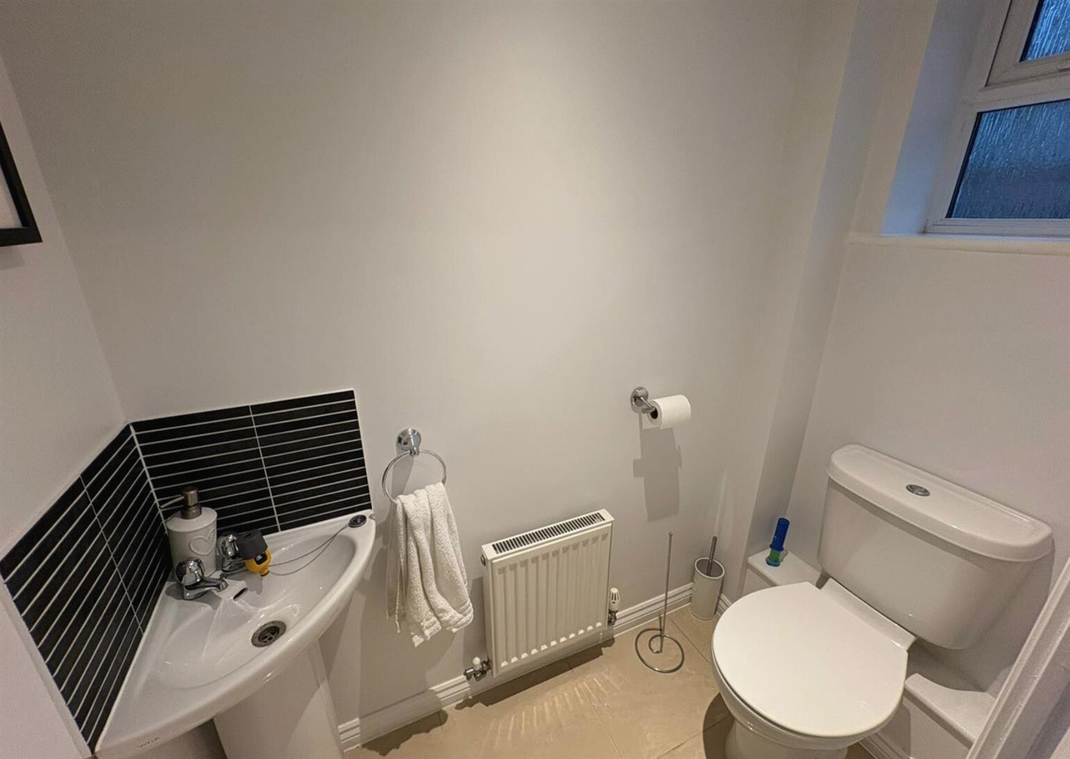Featuring a two piece suite with a low level pedestal, low level wash hand basin, radiator, double glazed window to rear elevation.