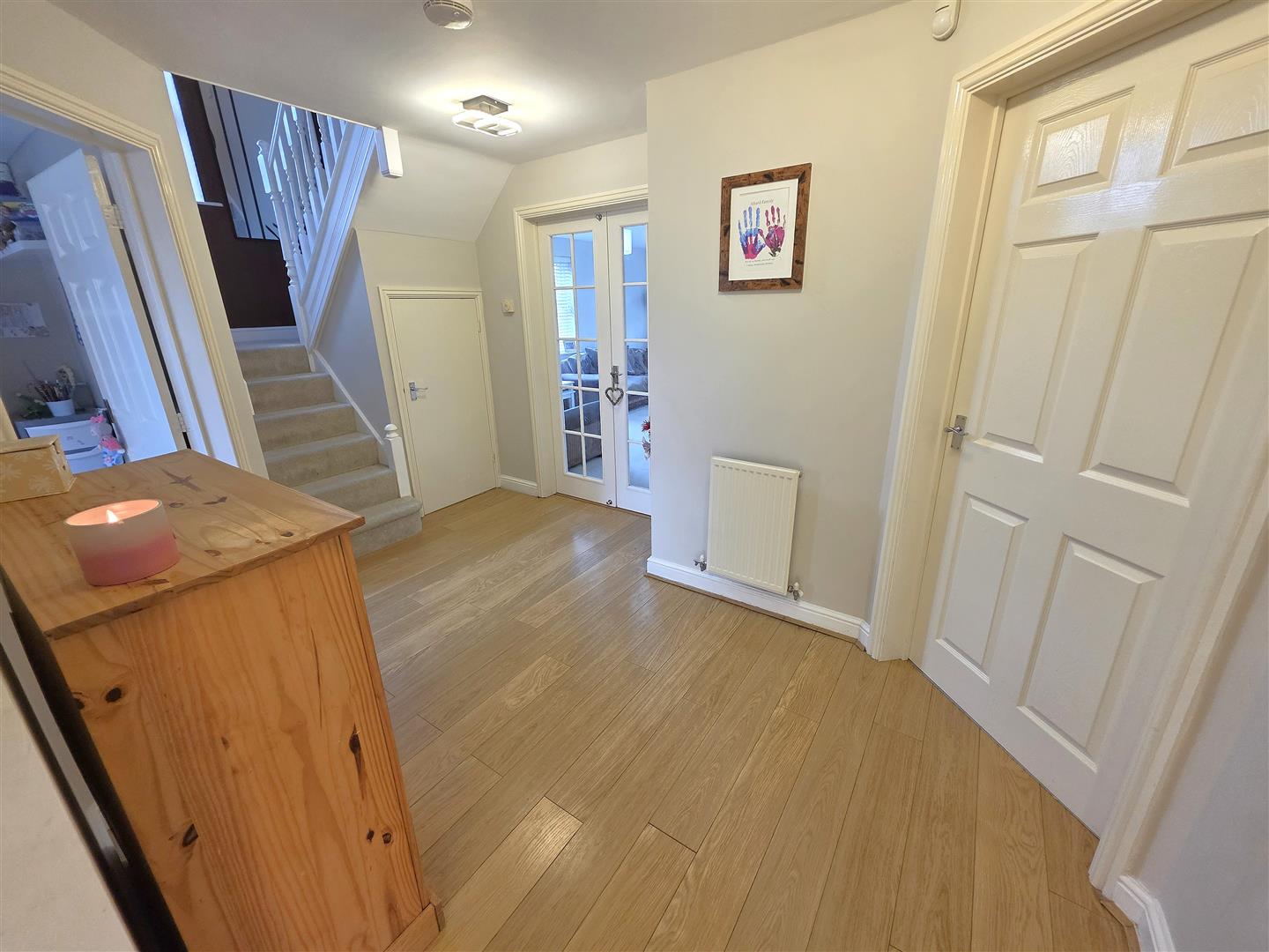 Entered via a double glazed door, radiator, storage cupboard, stairs rising to first floor landing, doors to: