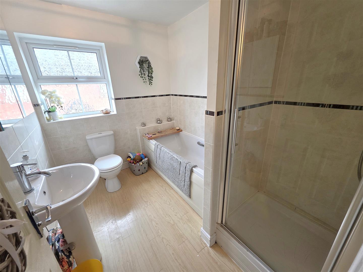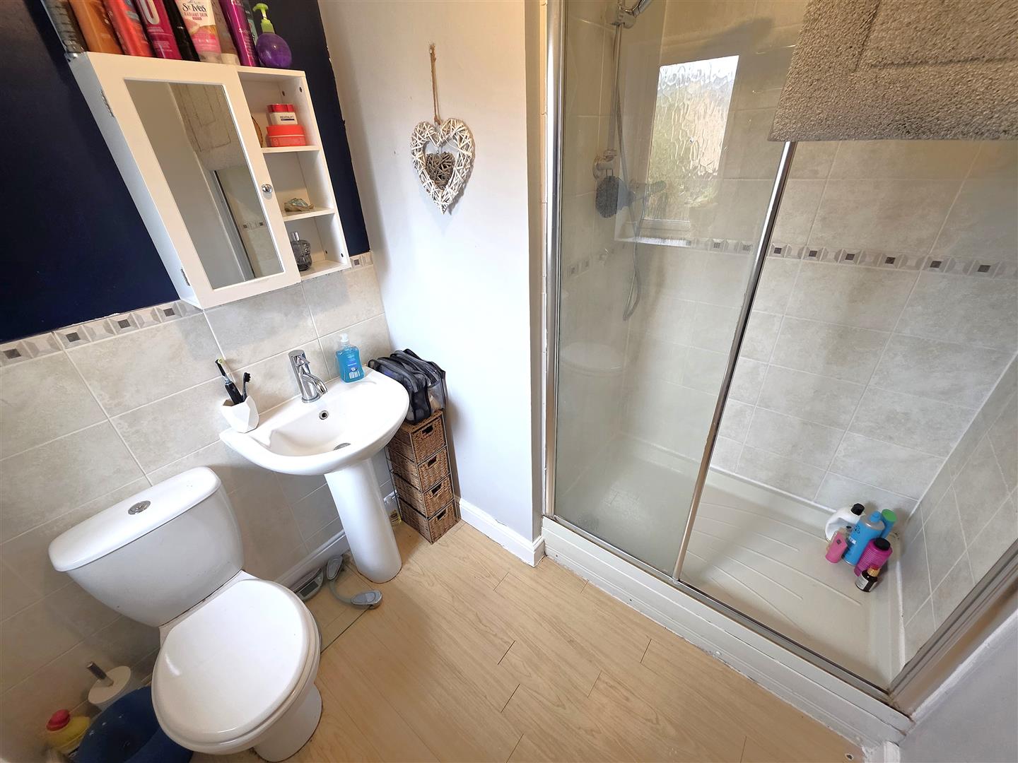 Featuring a four piece bathroom suite comprising a low level bath, separate mains feed shower cubicle, low level pedestal, low level wash hand basin, radiator, double glazed window to front elevation.