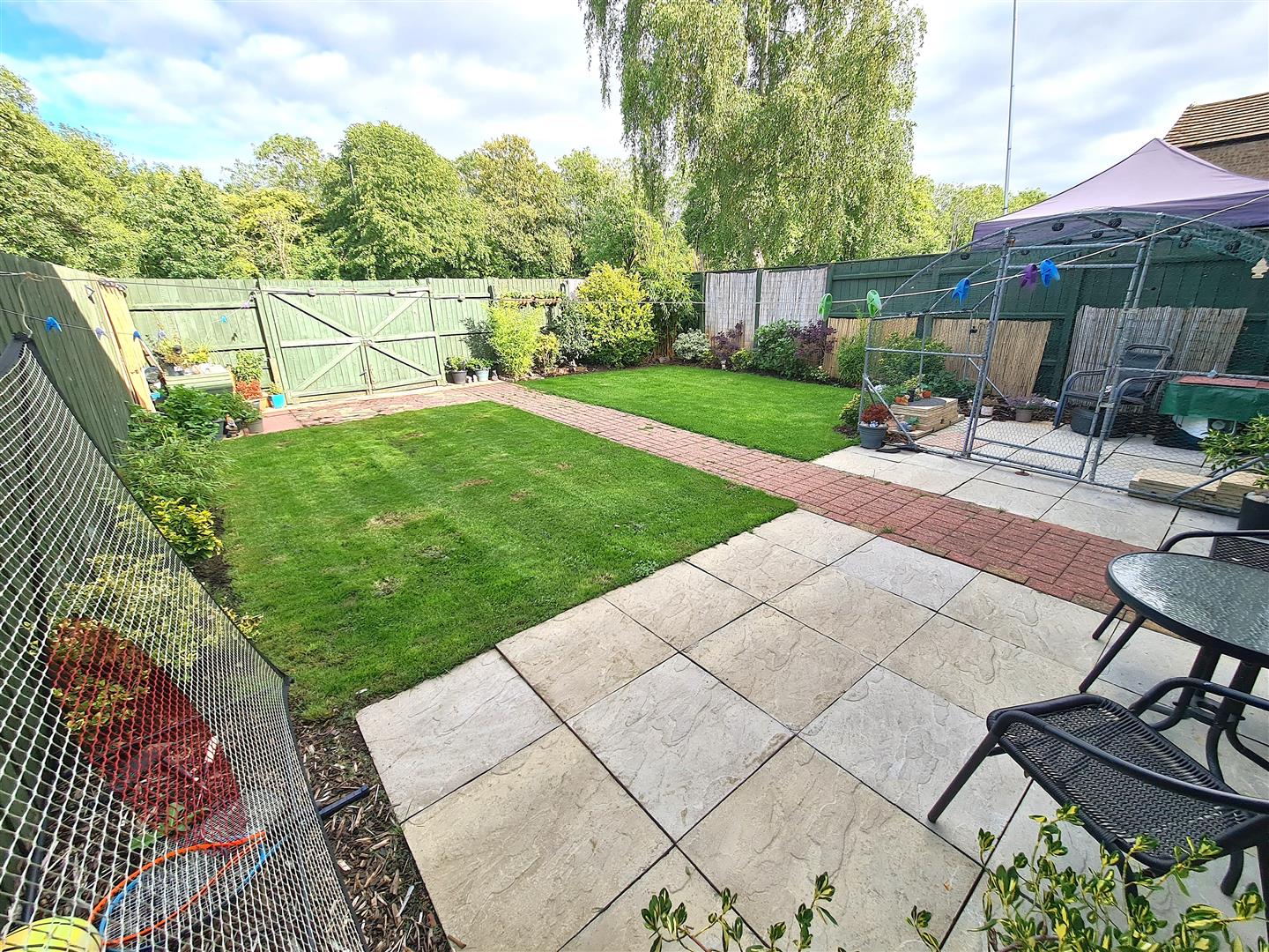 To the rear is a patio area that leads to a laid lawn with timber fence surround.