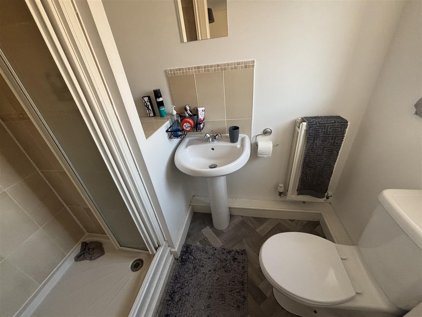 Fitted to comprise a three piece suite consisting of a mains feed shower cubicle, low level pedestal, low level wash hand basin, radiator, double glazed window to front elevation.