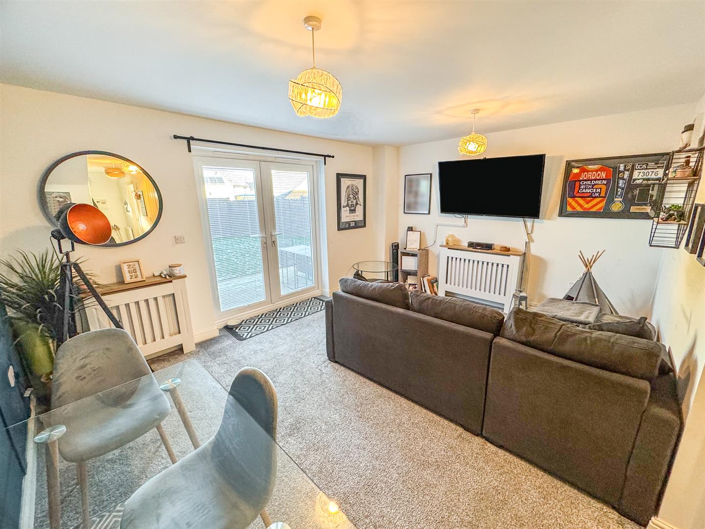 Double glazed French doors to rear elevation, radiator, multi media point, under stairs storage.