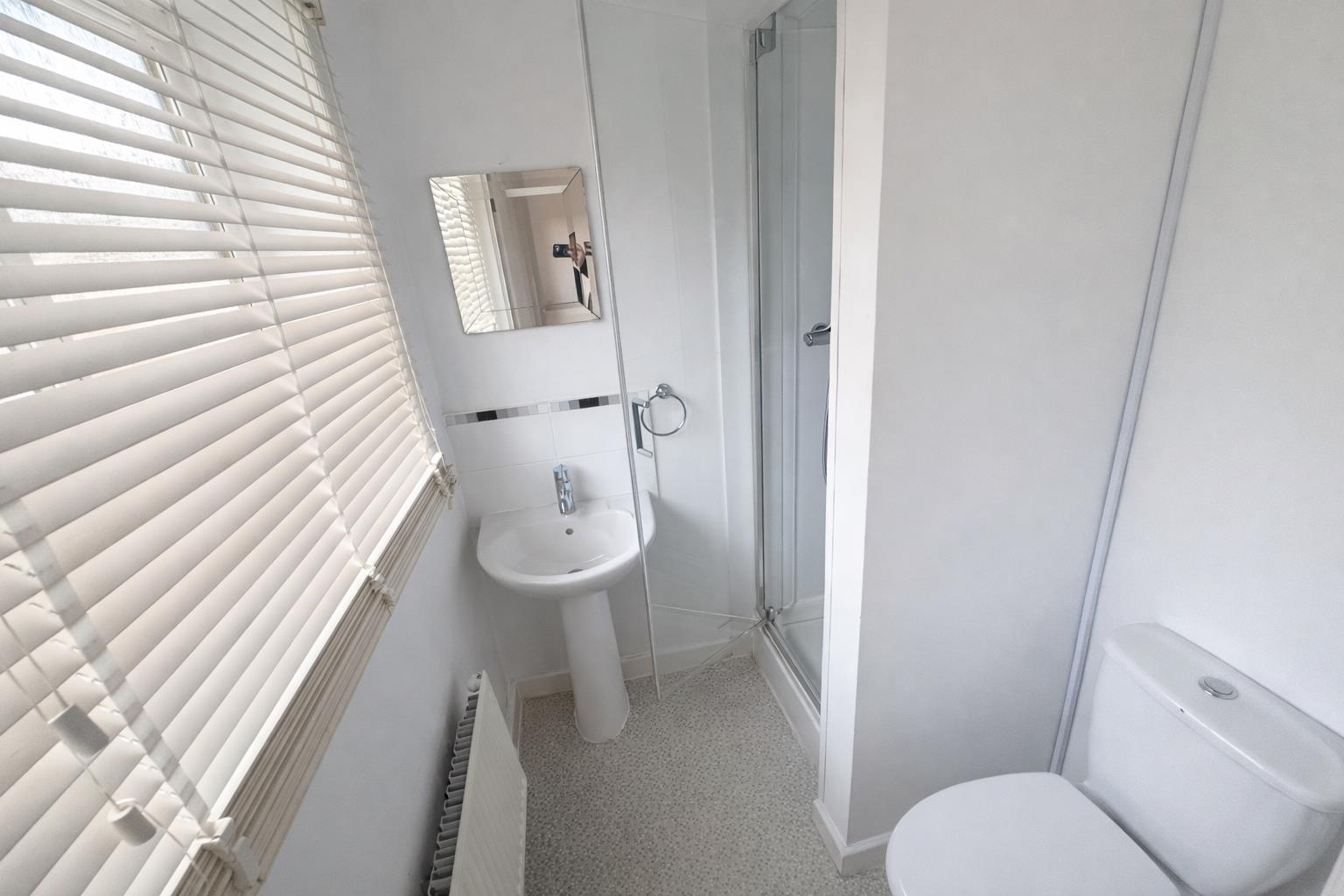 Fitted to comprise a three piece suite consisting of a mains feed shower, wash hand basin and WC, radiator with a frosted double-glazed window to the rear.