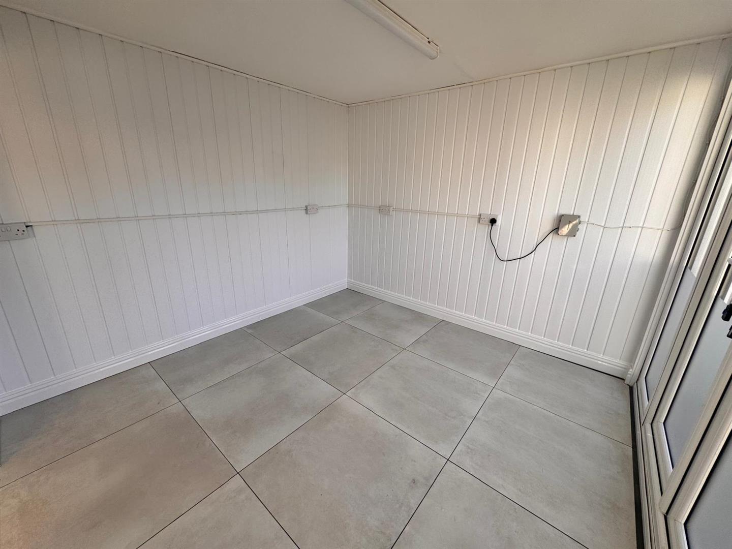 Electric roller doors, double glazed door and windows to the front elevation.
