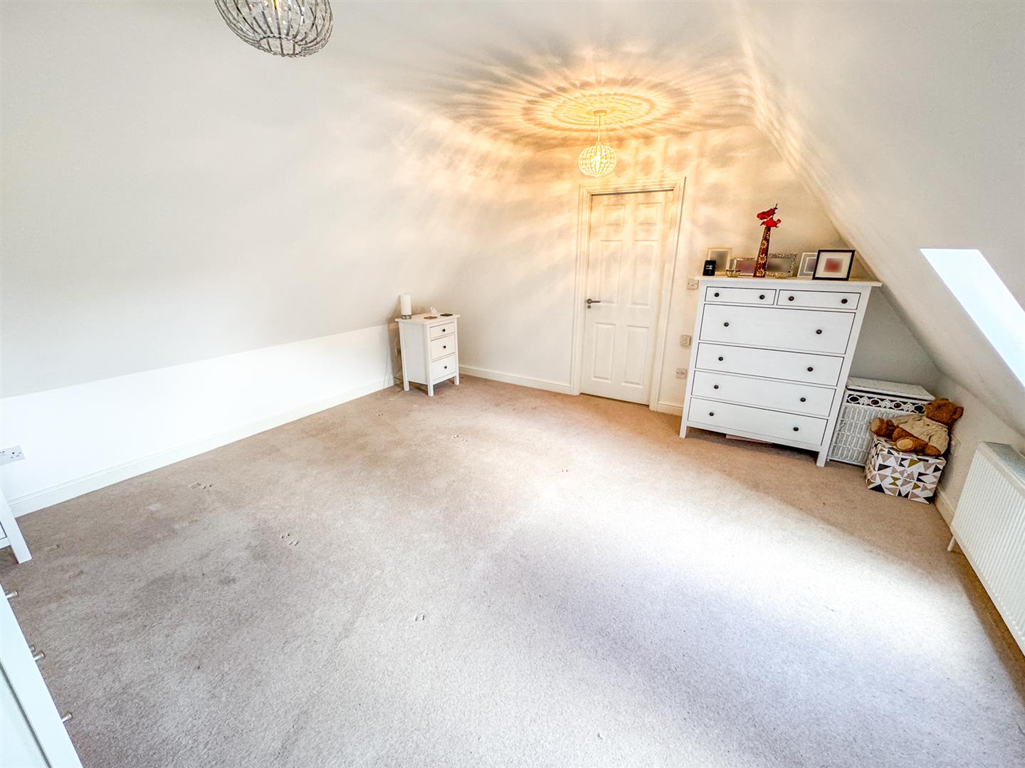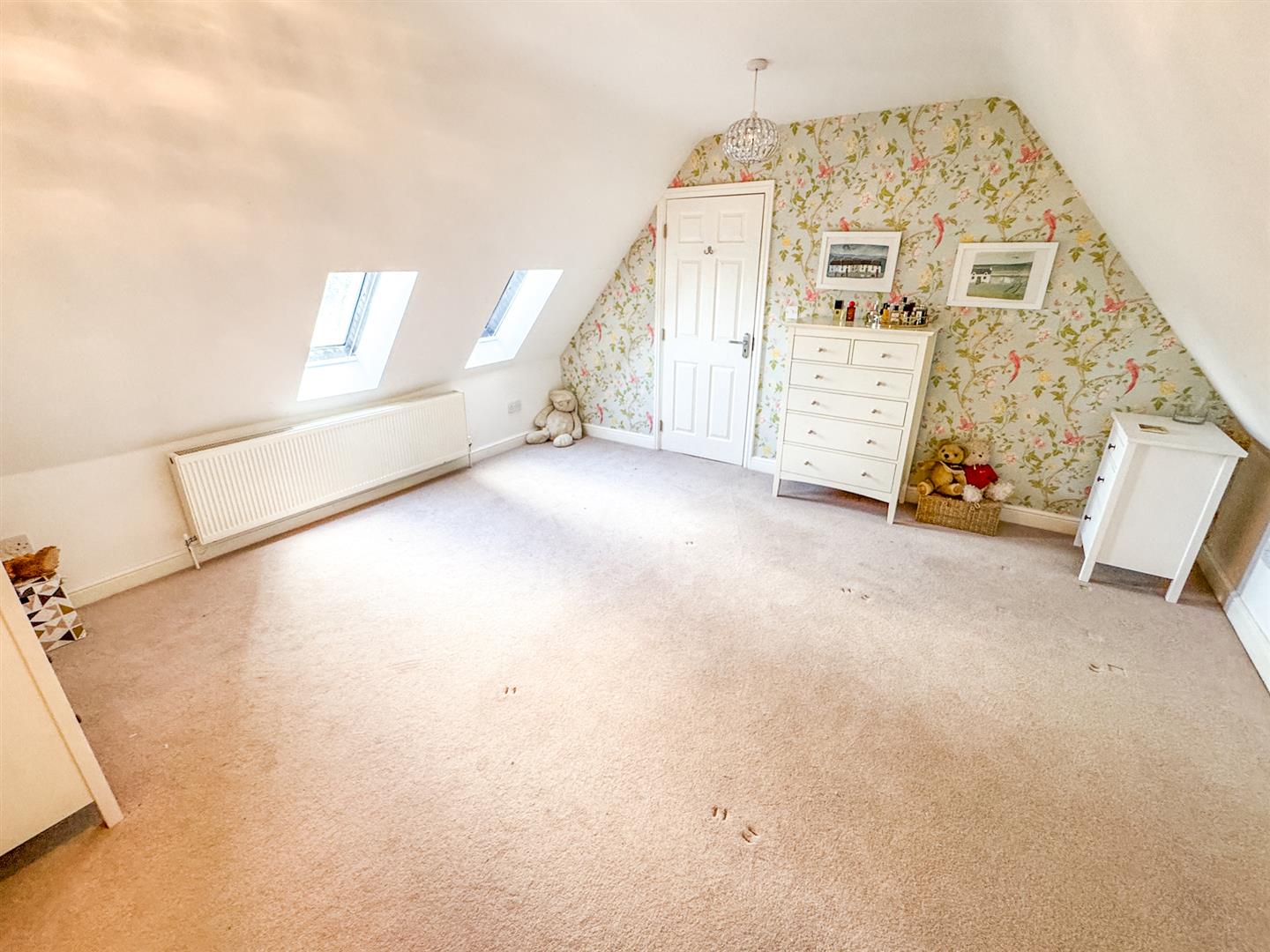 Two double glazed Velux windows, radiator, door to: