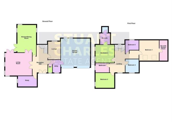 Upstairs, five generously sized bedrooms offer flexible accommodation. Two benefit from stylish en-suite shower rooms, while the remaining rooms are served by a contemporary family bathroom.