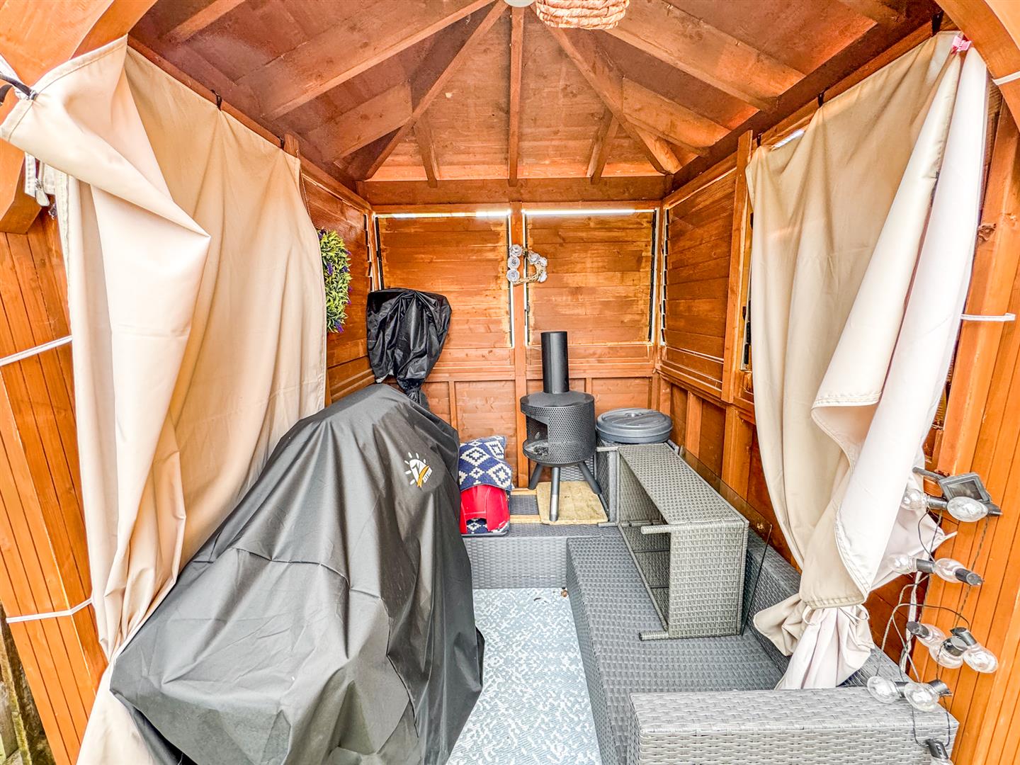 Rear: A low maintenance patio area leads onto a artificial lawn and to a pergola which located in the corner.