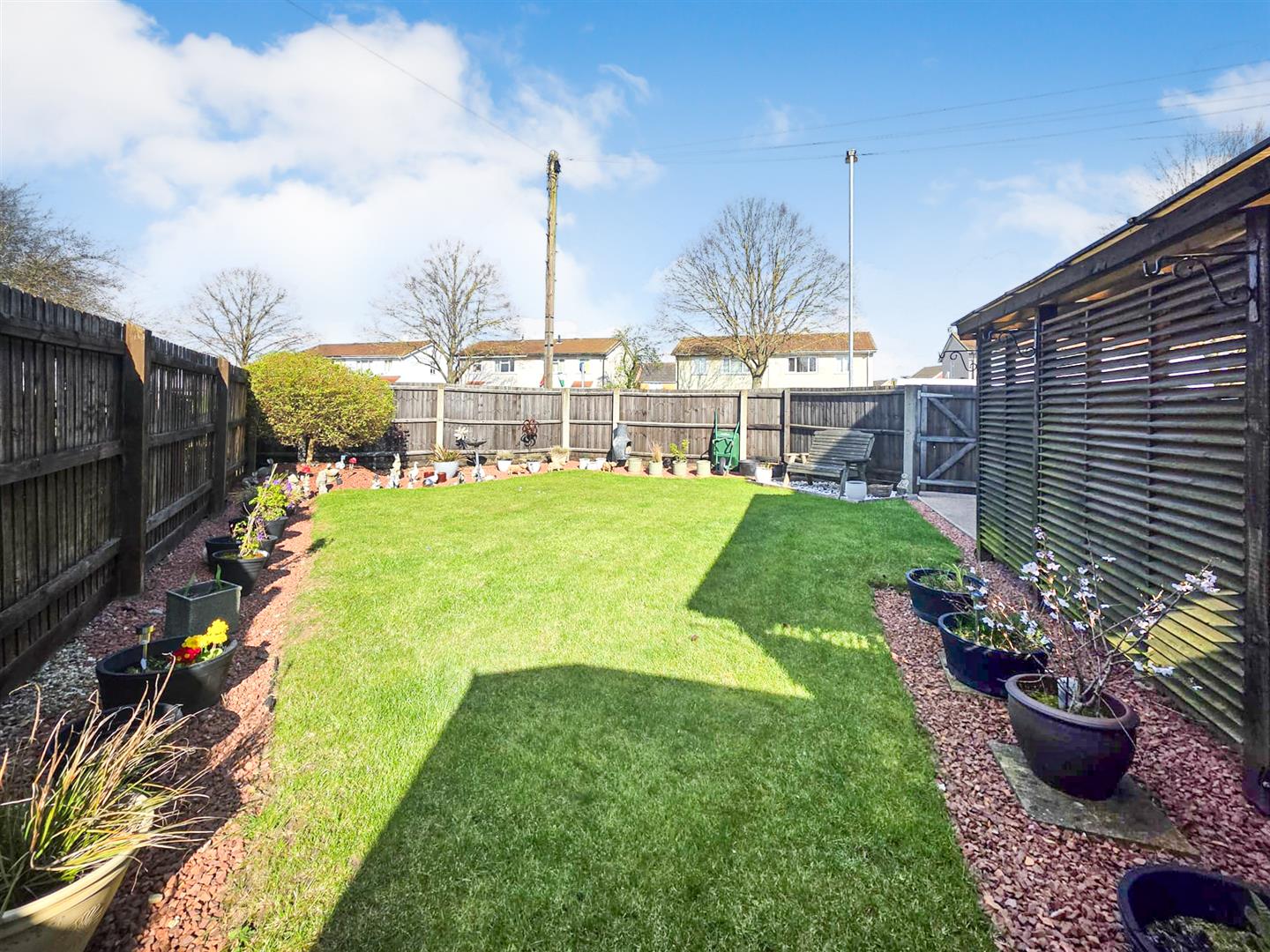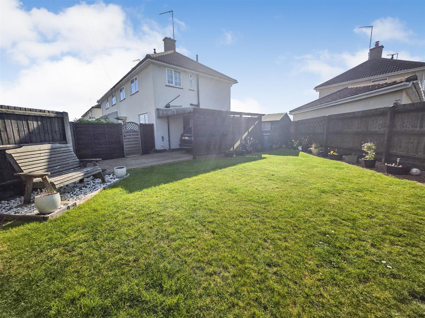 Side - Carport next to low maintence lawn enclosed by timber fencing