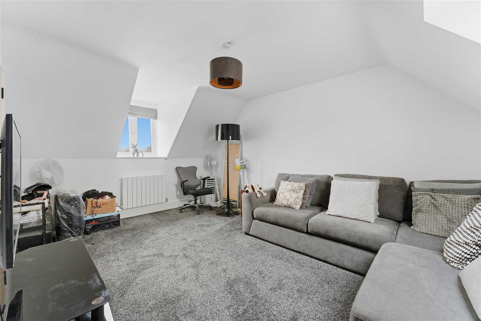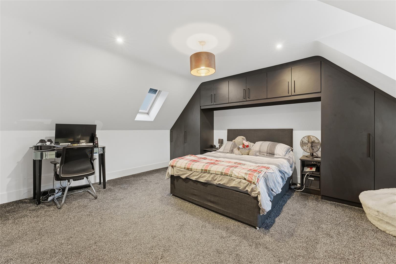 Two double glazed windows to rear elevation, double glazed window to front elevation, two radiators, ceiling spotlights, Tv point, doors to: