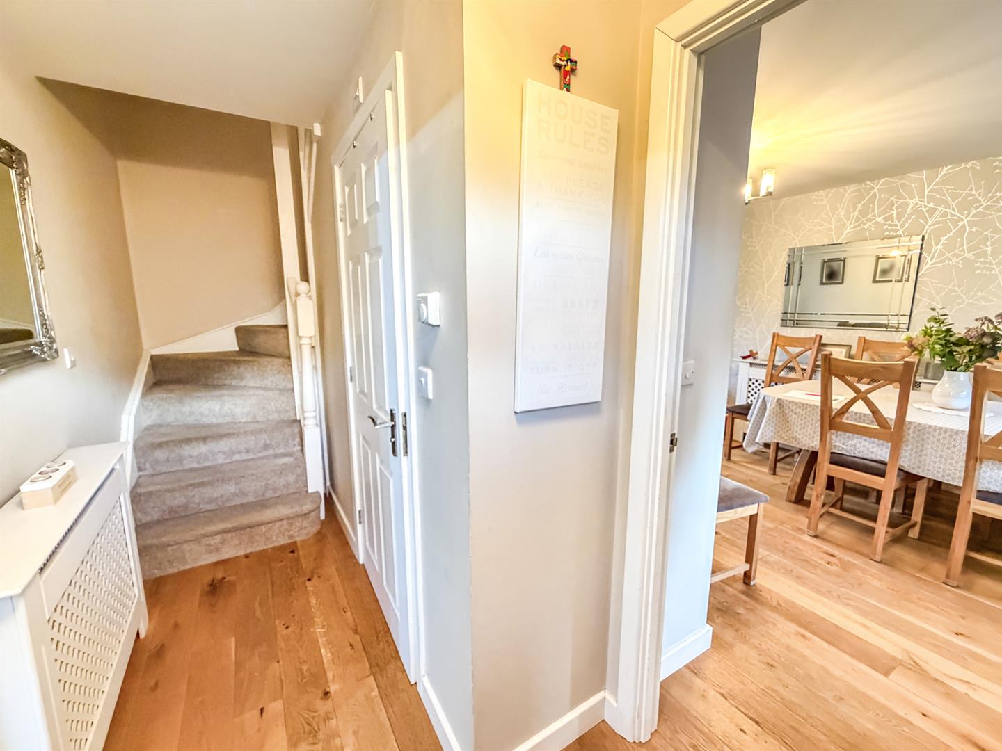 Entered via a double glazed door, radiator, stairs rising to first floor, doors to: