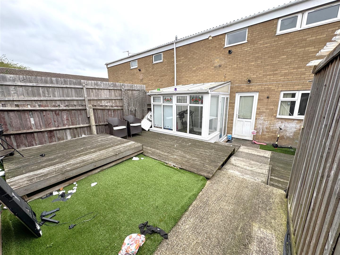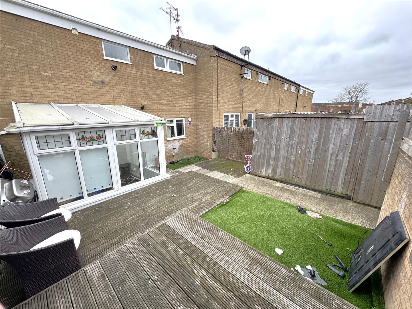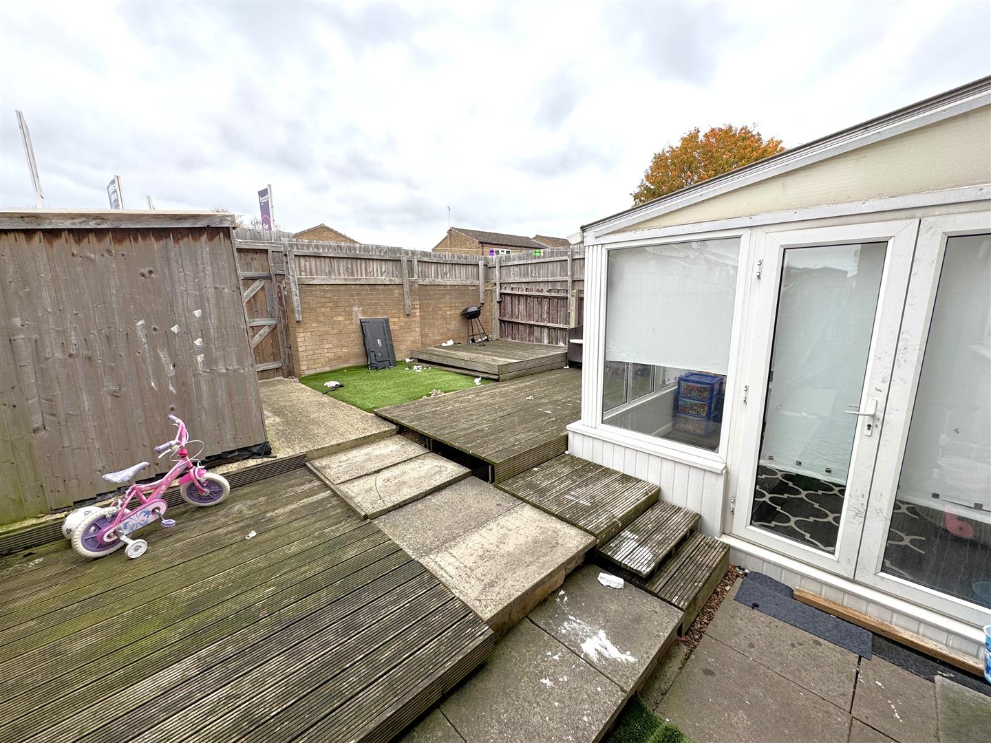 Rear - A mixture of a patio area and decking, enclosed to all sides by timber fencing with timber gate to rear communal parking area.