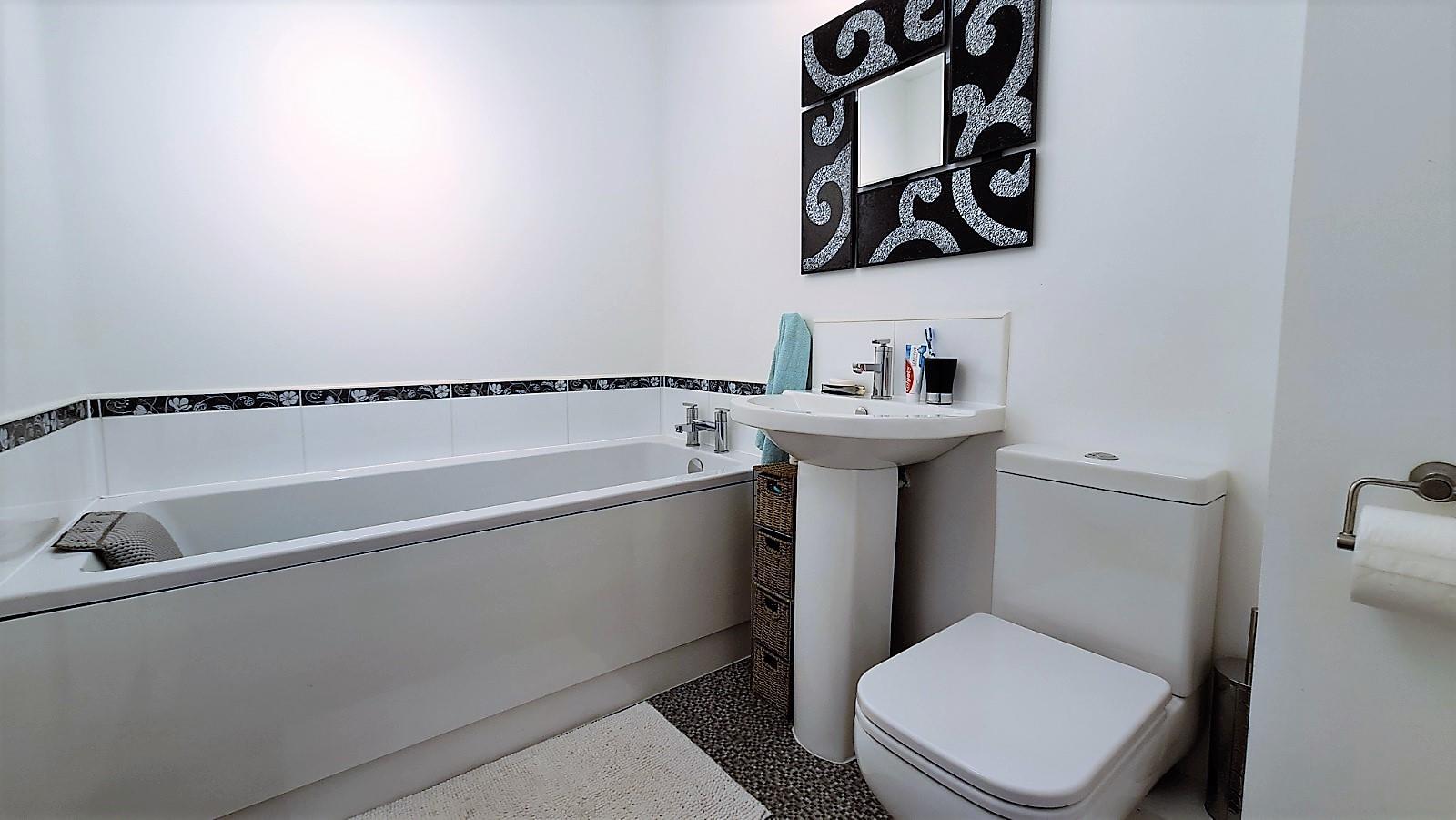 Featuring a Three piece suite with a white panel bath, low level wash hand basin and pedestal, radiator, extractor.