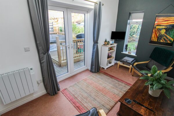 Three double glazed windows, double glazed Bi-folding doors, electric radiator, open serving hatch/breakfast bar area.