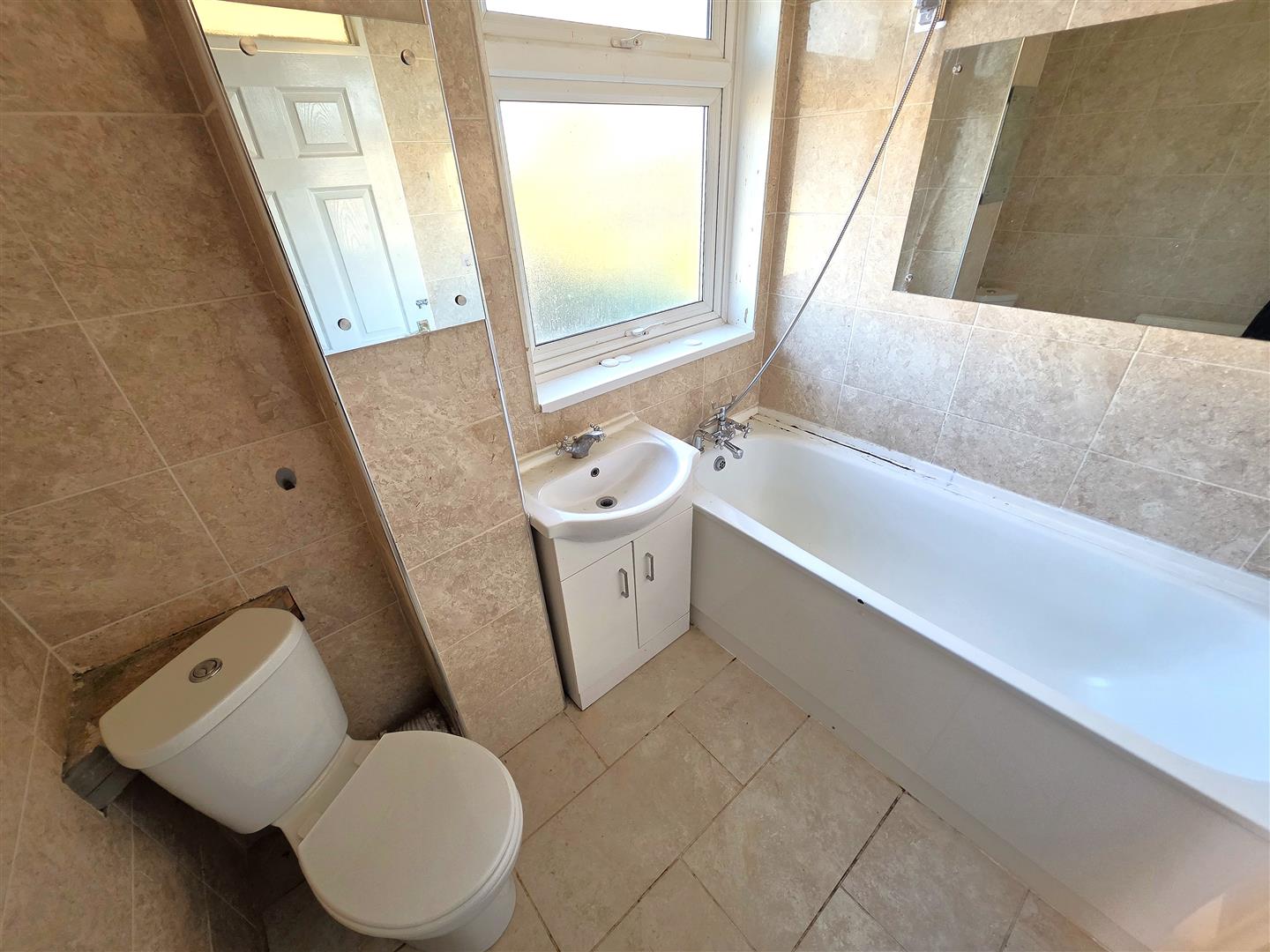 Fitted to comprise a three piece white suite featuring a low level white bath, low level pedestal, low level wash hand basin, extractor, radiator, double glazed window to front elevation.