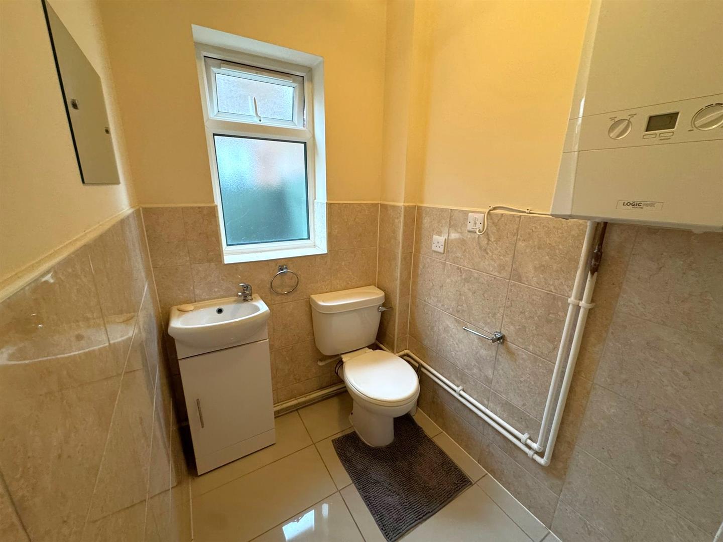 Featuring a three piece shower low level wash hand basin and low level pedestal, radiator, double glazed window to side elevation.